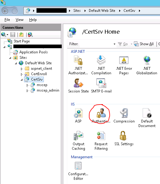 - Disable Anonymous Authentication. Without doing this, you’ll never have access to your Certificate Templates because the anonymous login doesn’t have rights to them (rightfully so).